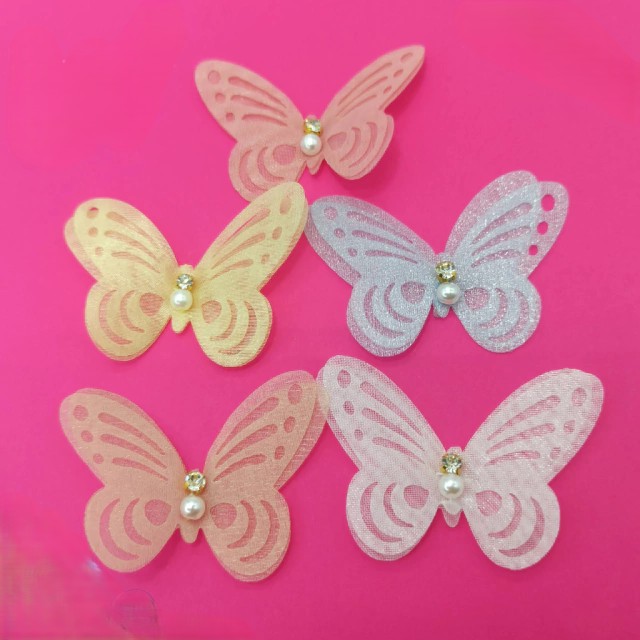 Borboleta de Organza (Asa Simples) 3 Perolas – Unidade